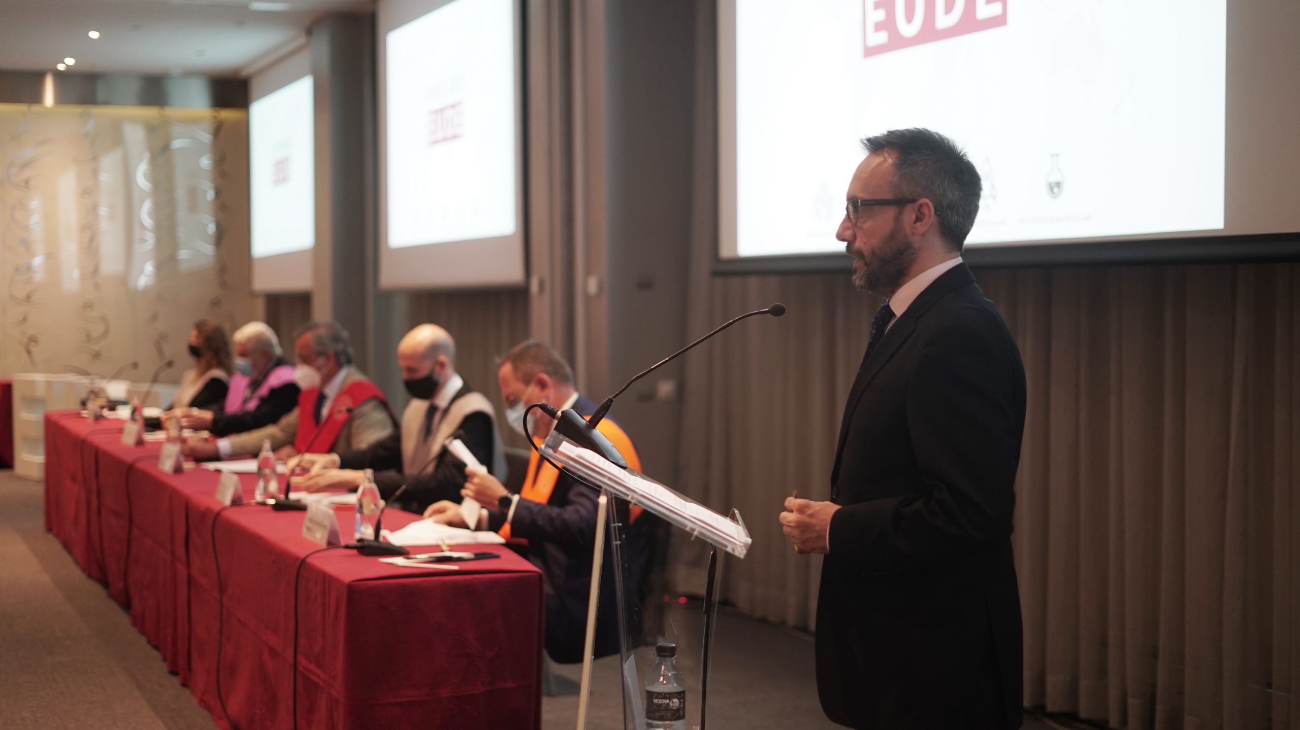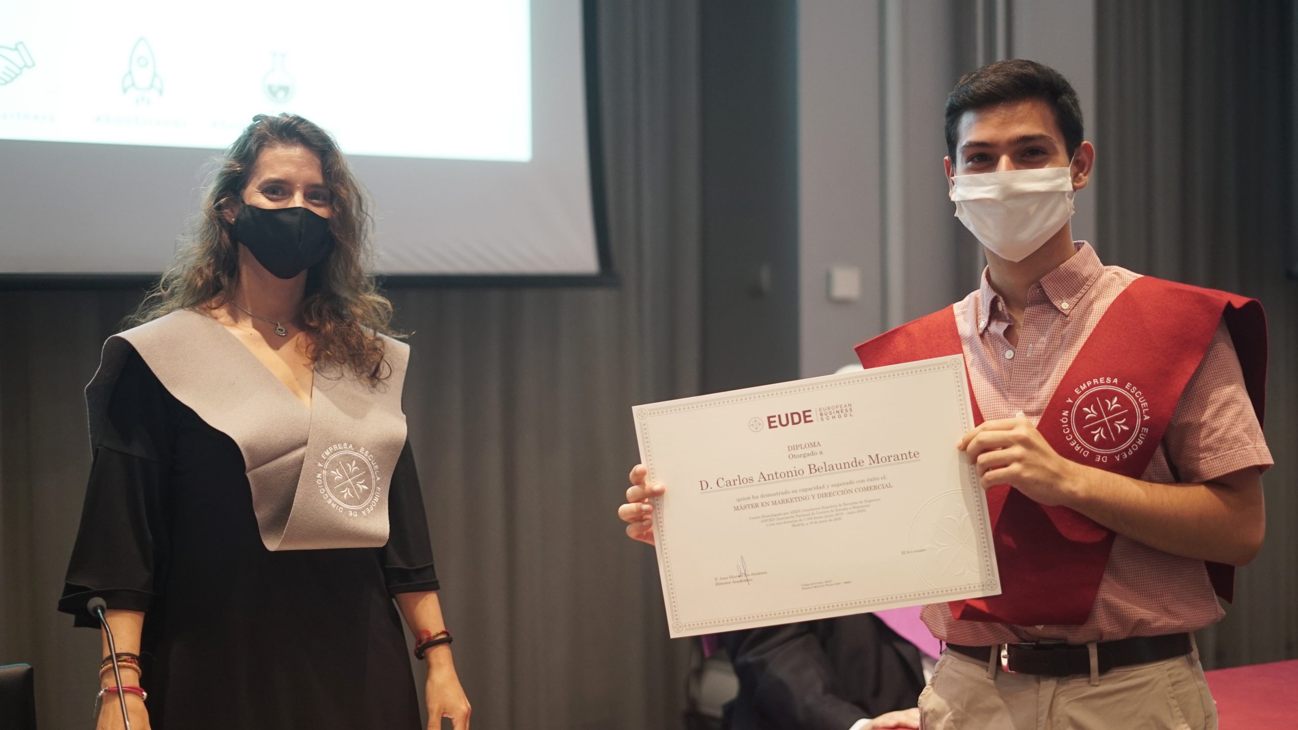 El Director de Académico, D. Juan Díaz del Río, dio inicio a la graduación agradeciendo su presencia a los alumnos y profesores. Durante su discurso agradeció a todos los alumnos su esfuerzo y compromiso con la escuela durante estos últimos meses tan difíciles, y animó a todos ellos a luchar por sus sueños a pesar de las circunstancias “esforzaos por convertiros en personas con virtudes, es decir, personas buenas y competentes. Huid del pesimismo y más ahora en este entorno que parece que se nos viene el mundo encima. Os animo a seguir luchando, a dar lo mejor de vosotros mismos, esto es lo que esperan vuestros amigos, familiares y todos los que formamos EUDE”.