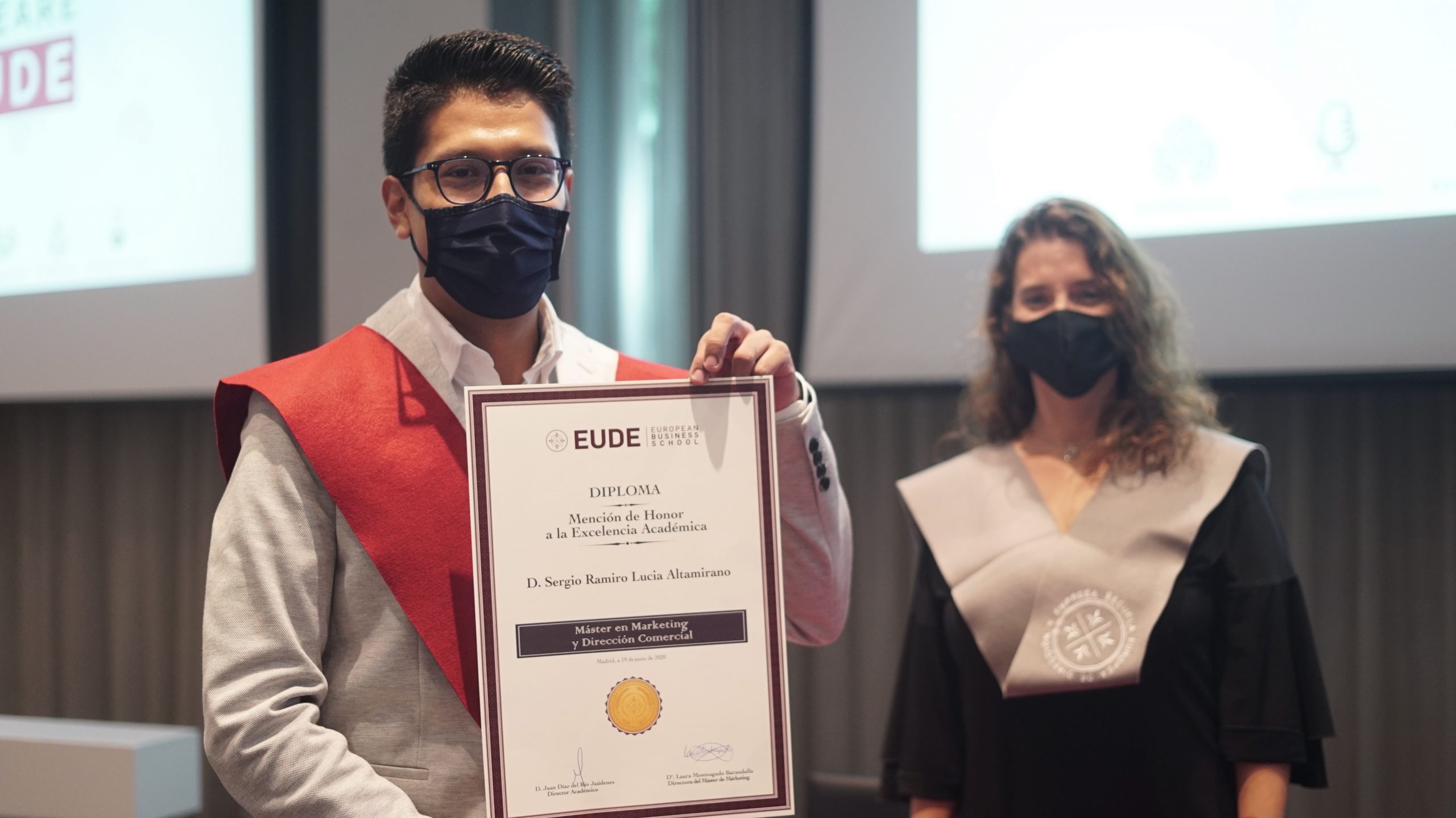 El pasado jueves 23 de julioEUDE Digital celebró una inolvidable ceremonia de graduación, donde los alumnos de los programas presenciales de Marketing y Dirección Comercial, y Marketing Digital, recibieron el título de Máster respectivo. Además algunos de ellos fueron sorprendidos por reconocimientos por mejor desempeño y mejor trabajo de fin de Máster.